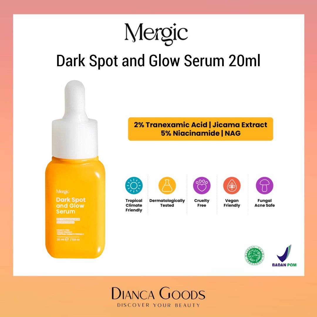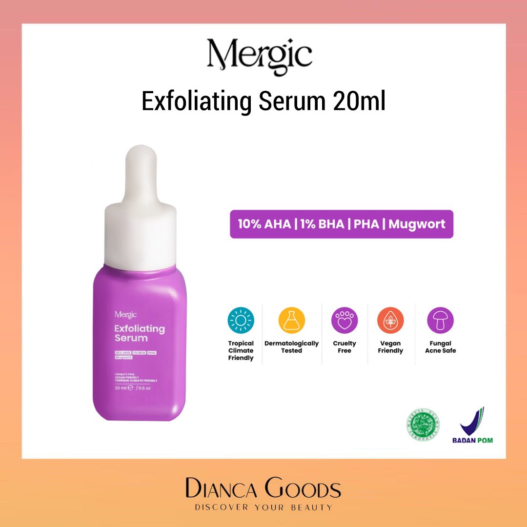 MERGIC Serum Wajah 20 ML Dark spot & Glow / Acne and Calming / Exfoliating Peeling Serum (ORIGINAL GUARANTEE) 💛 Dark Spot and Glow Serum 💛 Membantu mencerahkan kulit dan memudarkan flek hitam, dengan kandungan 2% Tranexamic Acid yang sangat berpengaruh dalam mencegah melasma sehingga efektif, terutama pada lingkungan tropis. Dapat menghambat interaksi sel melanosit penyebab flek hitam dan mengandung Jicama Extract untuk mencerahkan area kulit lebih maksimal. FUNGSI ✅ Mencerahkan kulit secara keseluruhan ✅ Memudarkan flek hitam dan bekas jerawat ✅ Mengurangi risiko munculnya flek hitam ✅ Mencegah tanda penuaan ✅ Memberikan tampilan akhir yang sehat dan bercahaya CARA PAKAI SETELAH TONER. Gunakan 5-10 tetes secara merata di wajah dan leher. Pijat lembut serum hingga menyerap sempurna. Dapat dilayer dengan serum Mergic yang lainnya kecuali Exfoliating Serum. Gunakan pelembab di akhir. JANGAN LUPA gunakan tabir surya di siang hari. 💙 Acne and Calming Serum 💙 Membantu menenangkan dan merawat kulit berjerawat. Diformulasi dengan penggabungan Soothing Agent and Acne Care Agent yang meminimalisir timbulnya iritasi. FUNGSI ✅ Merawat kulit berjerawat ✅ Menenangkan kulit kemerahan ✅ Mengurangi tampilan kulit berminyak ✅ Menguatkan skin barrier (lapisan kulit) ✅ Mencerahkan kulit secara keseluruhan CARA PAKAI SETELAH TONER. Gunakan 5-10 tetes secara merata di wajah dan leher. Pijat lembut serum hingga menyerap sempurna. Dapat dilayer dengan serum Mergic yang lainnya kecuali Exfoliating Serum. Gunakan pelembab di akhir. JANGAN LUPA gunakan tabir surya di siang hari. 💜 Exfoliating Serum 20ml 💜 Membantu mengangkat sel kulit mati dan membersihkan pori-pori tersumbat sehingga penyerapan skincare menjadi lebih sempurna. FUNGSI ✅ Mengangkat sel kulit mati ✅ Membersihkan pori-pori tersumbat ✅ Mengurangi tekstur kulit kasar akibat bruntusan ✅ Merawat kulit berjerawat, kering, dan kusam ✅ Mencerahkan kulit secara keseluruhan CARA PAKAI JANGAN GUNAKAN DI KULIT YANG BASAH. Cuci wajah dan keringkan sebelum penggunaan serum. Gunakan 5-10 tetes secara merata di wajah dan leher. Tunggu 10 menit lalu bilas. Gunakan pelembab setelahnya. Hindari kandungan aktif seperti Retinol, Vit C, Niacinamide dll selama 8 jam. Dapat digunakan 2x seminggu. Setelah penggunaan, hindari terpapar langsung dengan sinar matahari. WAJIB gunakan tabir surya di siang hari. Hindari pemakaian di area mata dan mulut. Jika terjadi reaksi (iritasi), hentikan pemakaian. ============================================= *Setiap barang yang akan kami kirim selalu dicek dan dipastikan dalam kondisi baik dan tidak rusak. kerusakan paket setelah sampai di tangan pembeli bukan menjadi tanggung jawab kami. *setiap pengiriman product sudah termasuk packing menggunakan bubble wrap (gratis). TIDAK MENJUAL BARANG YANG TIDAK ORIGINAL! - Dianca Goods -